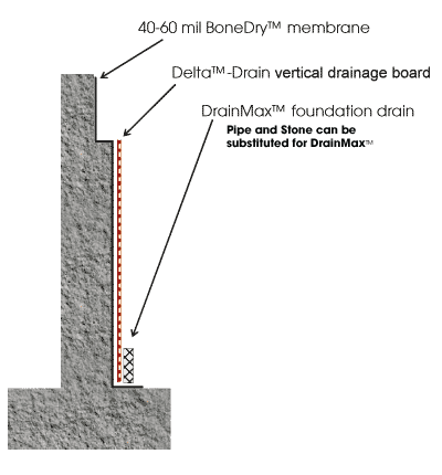 board, and the DrainMax™ (or Pipe and Stone) foundation